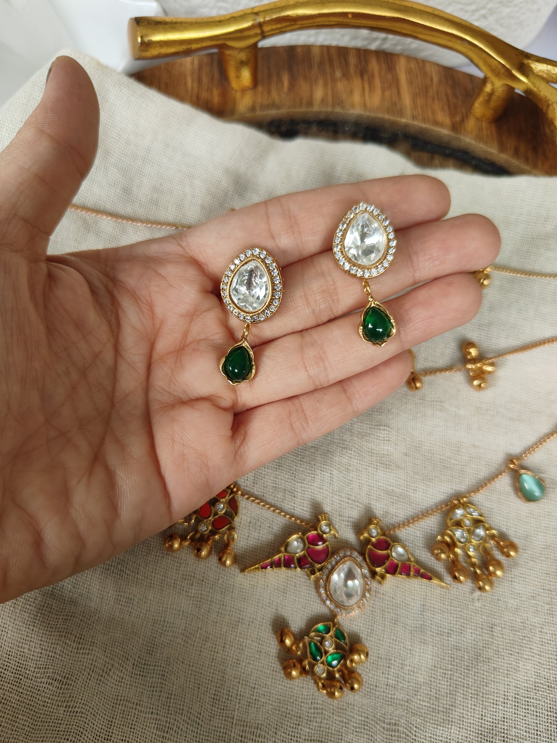 Perfect for weddings, festive celebrations, and ethnic ensembles, this set brings together heritage craftsmanship and Bollywood-inspired glamour—making it a standout addition to your jewellery collection.