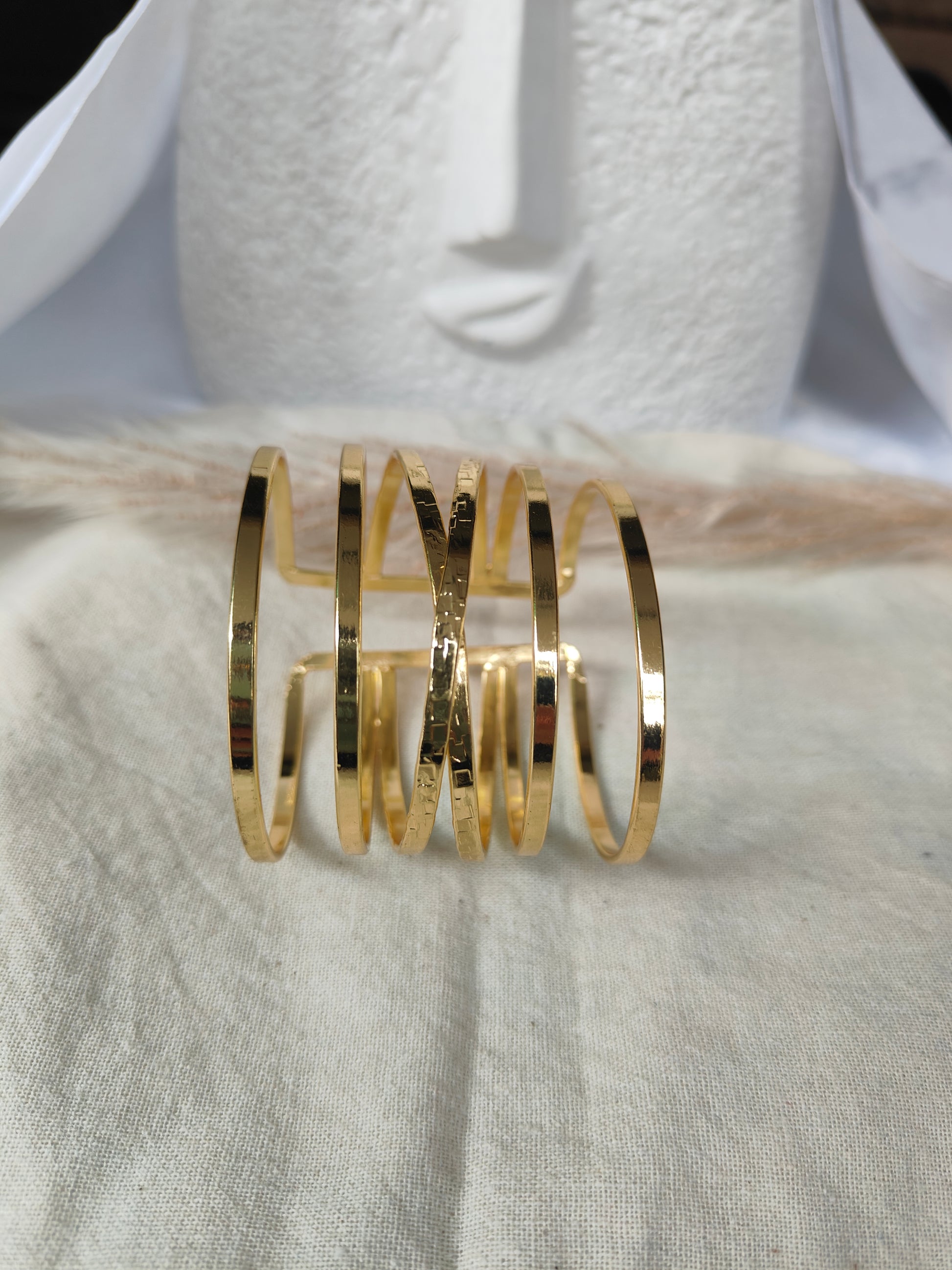 Elevate your style with this elegant, high-quality bracelet crafted from durable brass and finished with a luxurious 18kt gold polish. Designed to blend sophistication with comfort, this bracelet features an adjustable fit, making it perfect for all wrist sizes.