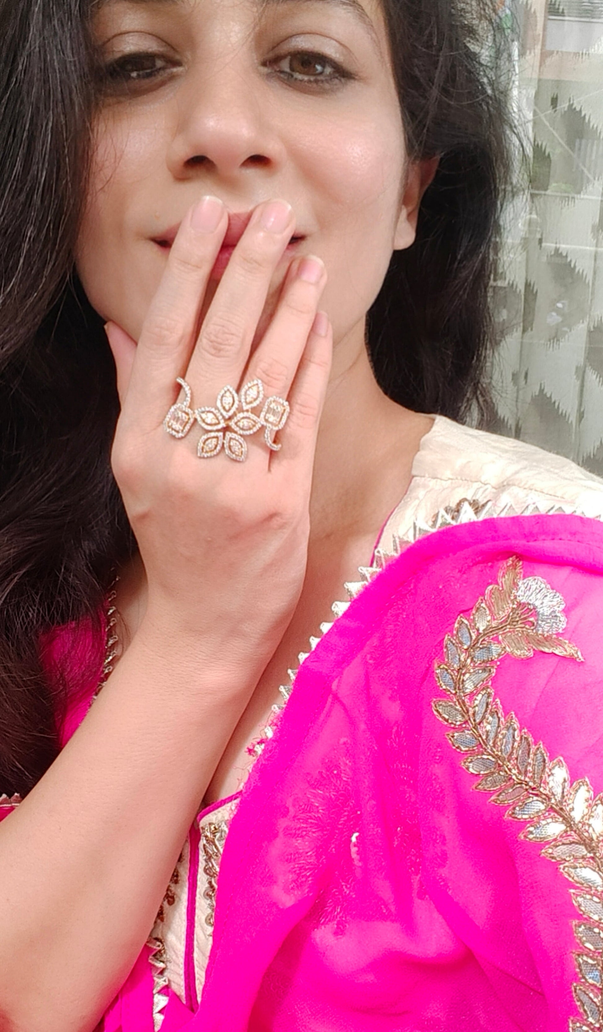 Designed with playful petal motifs and geometric sparkles, it’s as graceful as a breeze and as radiant as your vibe. The adjustable fit ensures it hugs your finger just right – perfect for those who love comfort with a side of wow.